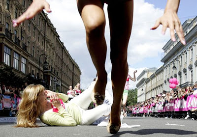 Women in St.Petersburg have taken part in a race wearing shoes on 9 cm stiletto heels competing for a prize of around $US 2,000.