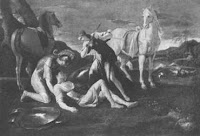 Room 279. The Hermitage has a very large and valuable collection of the works of Nicolas Poussin (1594-1665), the founder of Neoclassicism in seventeenth century French painting. The main task of art according to Poussin was to portray the noble, the heroic and the beautiful embodied in ideal forms, which the artist can learn only by studying the legacy of antiquity. In the centre of Poussin’s vision stands Man, endowed with reason, will and spiritual beauty. Such are the heroes of his numerous paintings on biblical, mythological, and literary themes: the selfless Erminia in Tancred and Er-minia, the fearless Esther of Esther before Ahasuerus, and Moses the wise tribal chief in Moses Striking the Rock. Poussin’s rationalism and philosophical outlook are revealed in his delightful Landscape with Polythemus (1649). Polythemus, the one-eyed Cyclops, is sitting on the top of a rock playing a pipe; the nymphs, satyrs and a ploughman tilling the land are all absorbing this song. In his search for an ideal representation of nature Poussin does not paint from life, but builds up his landscape from separate details observed in nature.