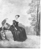 Rooms 284-289. 18th century art. This room/contains several pieces by one of France’s most eminent artists, Antoine Watteau (1684-1721) who, in his search for a realist approach, broke with hidebound academic convention. In his small paintings The Hardships of War and The Recreations of War (room 284) Watteau portrayed the everyday life of a soldier rather than ostentatious battle scenes as his predecessors had done. The Savoyard with a Marmot (1716), a picture of a simple-hearted young travelling musician, also confirms Watteau’s interest in the simple phenomena of life. The blue expanse of the clear, fresh sky, the buildings of the small town, and the silhouettes of the bare trees make up a landscape in which the fresh colours of autumn are dominant. Watteau became famous after his adoption of a completely new genre, as painter of so-called fetes galantes. An example of this type of painting is the Embarrassing Proposal, painted around 1716. Some members of fashionable society are amusing themselves chatting in the shade of the gossamery foliage; the casually graceful postures of the young ladies and their admirers convey subtle, almost imperceptible shades of emotion. A delicate range of colour is manipulated by Watteau in tones of subdued silvery grey, brownish-orange and yellowish-pink. Exquisite colouring and delicate execution distinguish one of the artist’s masterpieces, a small painting A Capricious Woman (c. 1718), in which the spectator encounters the same world of superficial feelings.